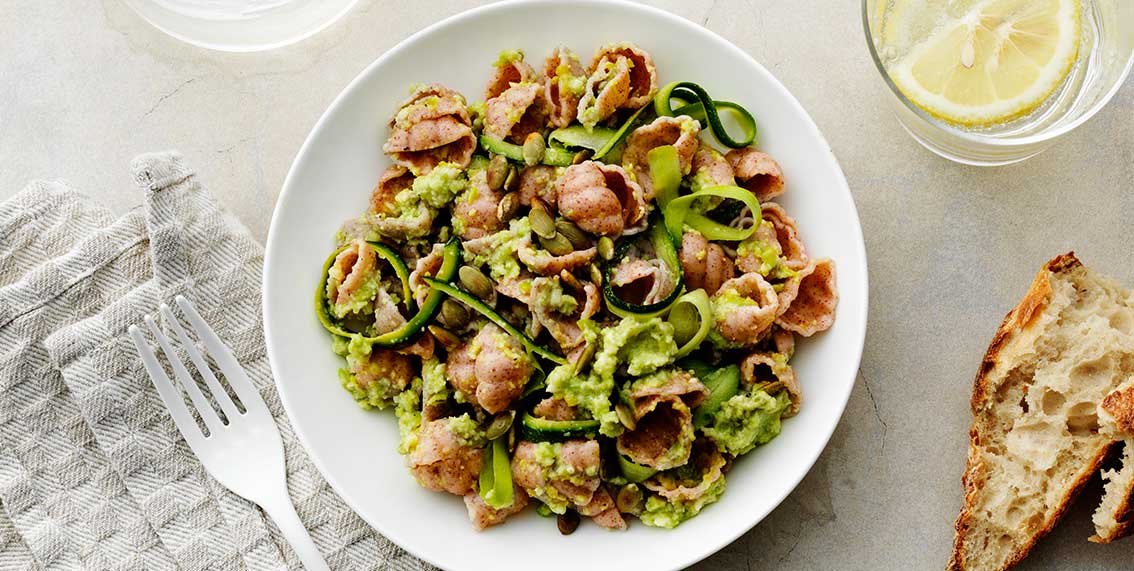 Gnocchi uit de oven met courgette, grana padano en pesto