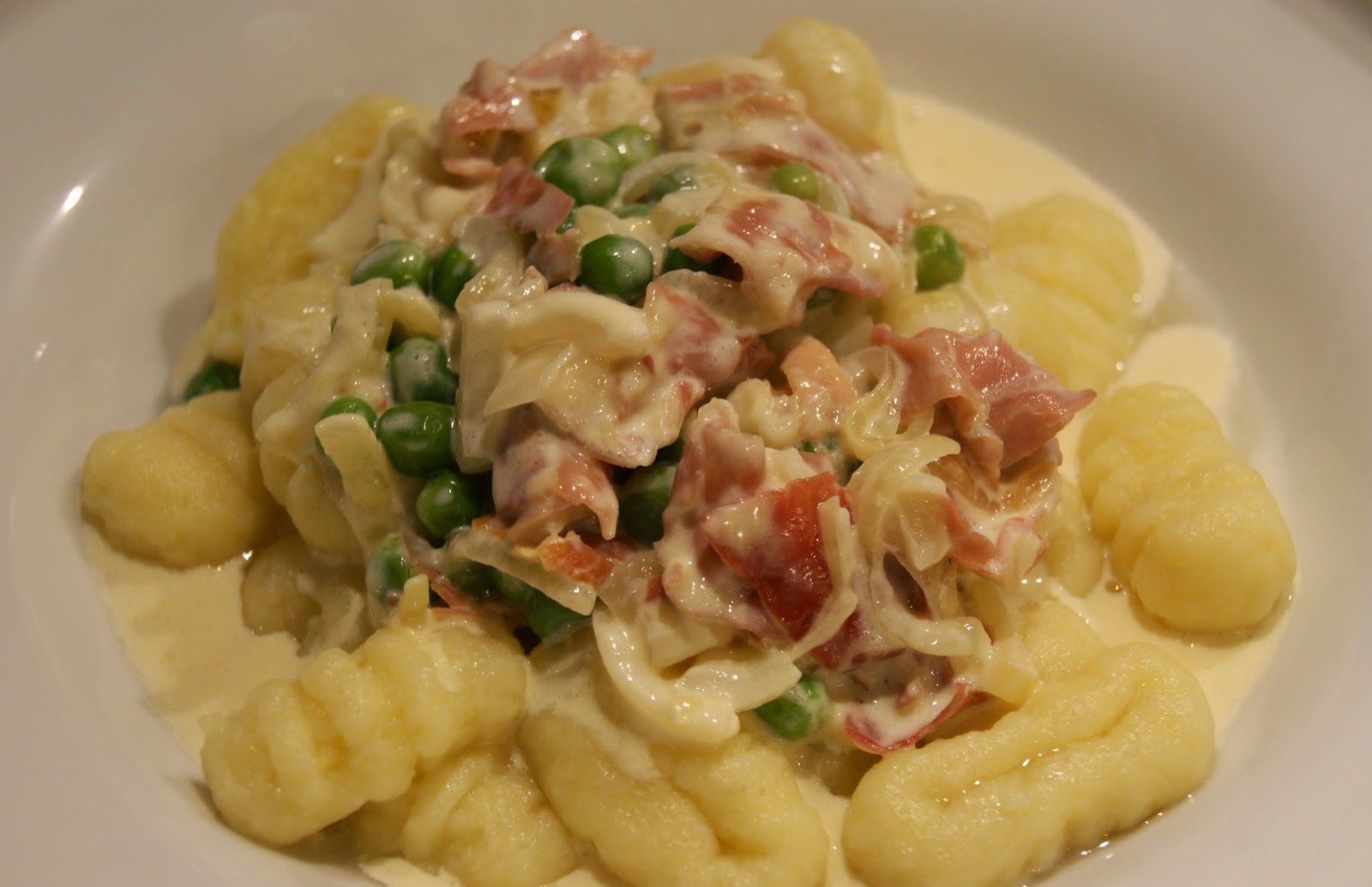 Bulvių virtinukai gnocchi su grietinės ir šoninės padažiuku